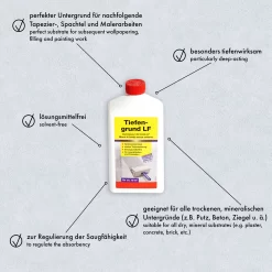| Caractéristique: | besonders tiefenwirksam, lösungsmittelfrei, perfekter Untergrund für nachfolgende Tapezier-, Spachtel und Malerarbeiten, zur Regulierung der Saugfähigkeit |