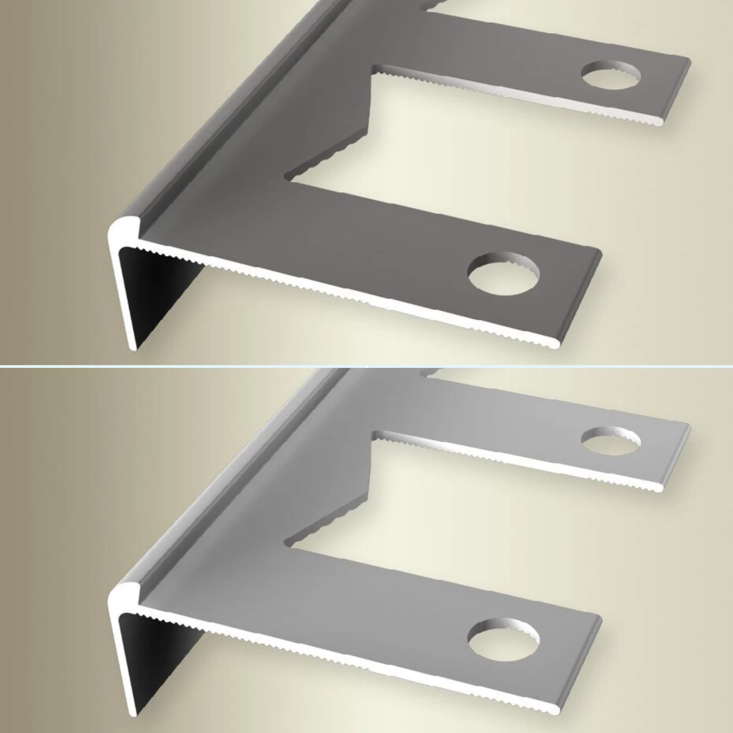 Les profils de finition sont très faciles à fixer: à visser ou à coller. Veillez à ce que le support soit droit et stable. Pour les profils de finitions autoadhésifs le support doit être sec, sans poussière et sans graisse pour que l »autocollant puisse coller à 100%.
